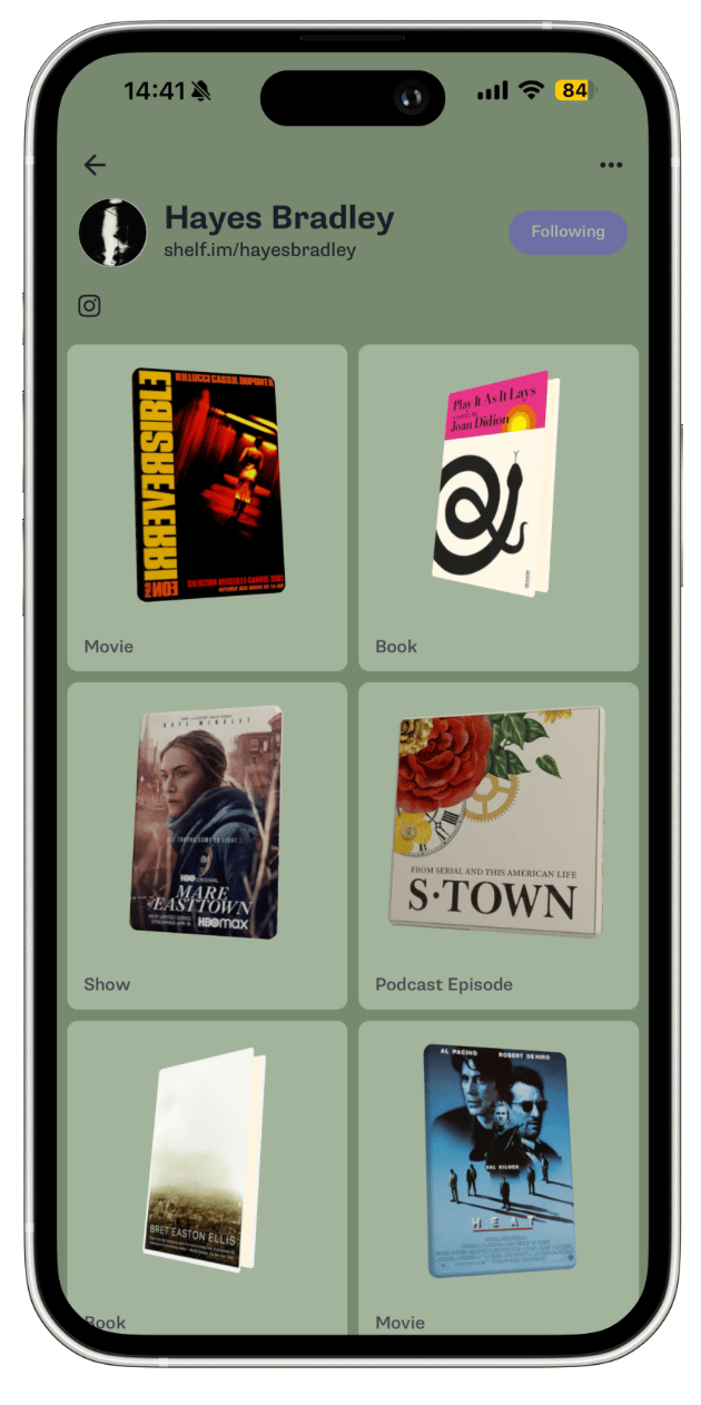 What else is Hayes Bradley is into? Get real-time updates at shelf.im/hayesbradley.